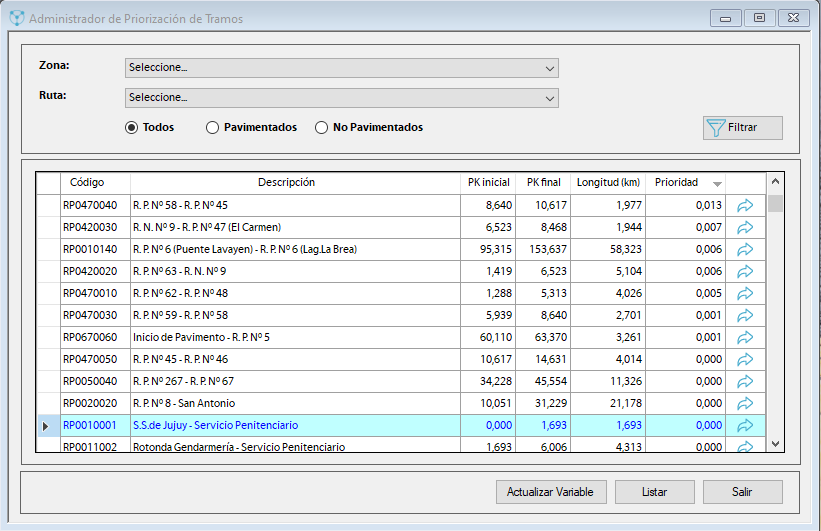Y finalmente el SIGMAVIAL calculará según la ecuación elegida la priorización de atención para cada tramo de la red vial: